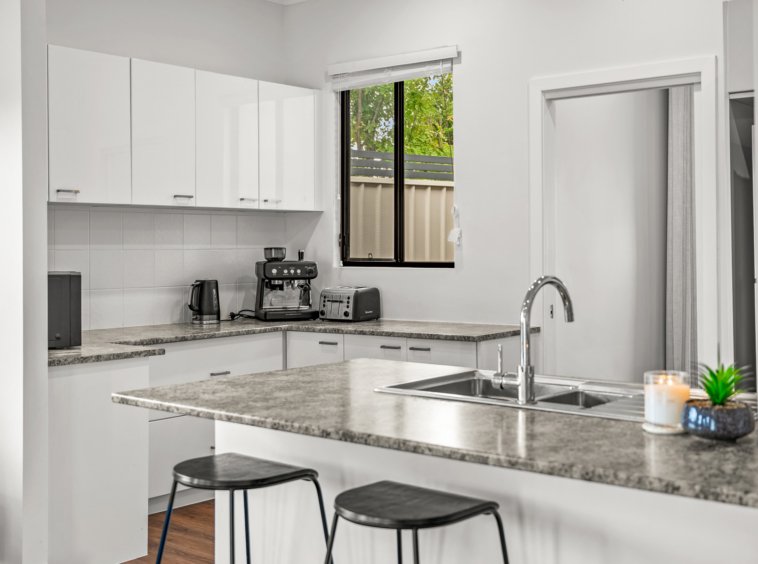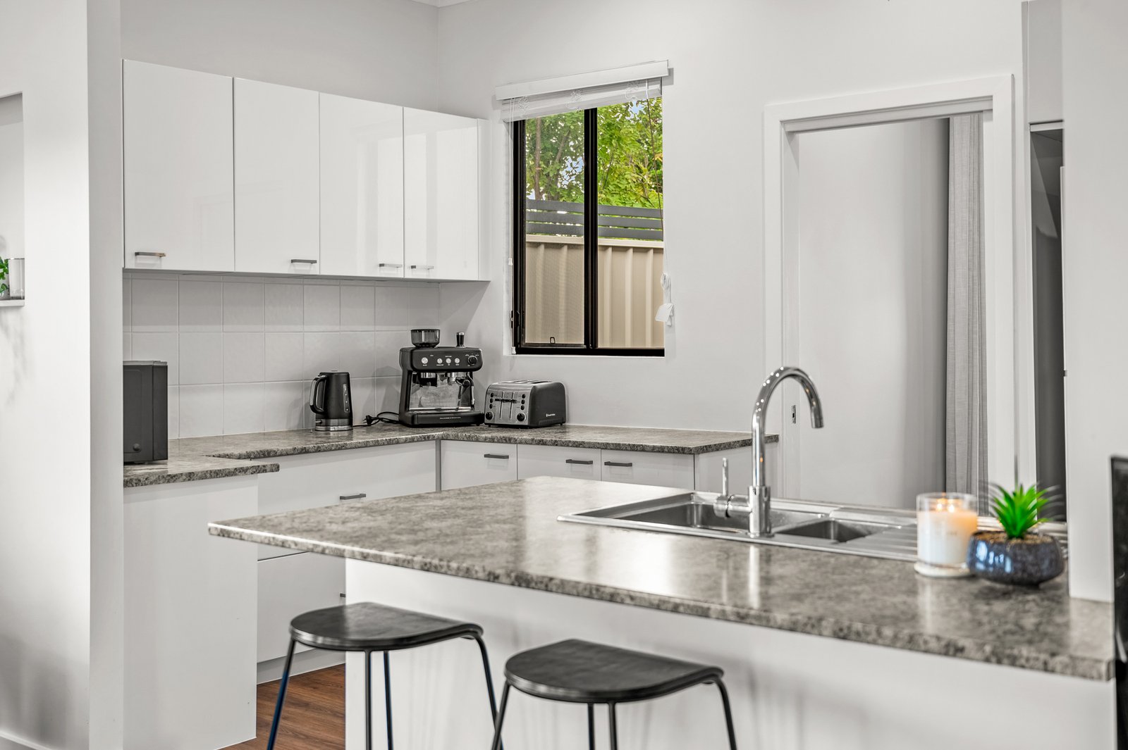 The kitchen sits at the heart of the home and connects seamlessly to the large alfresco entertaining deck, making indoor-outdoor living effortless. An additional patio area at the front of the home offers another relaxing space to enjoy the outlook across the generous lawn.