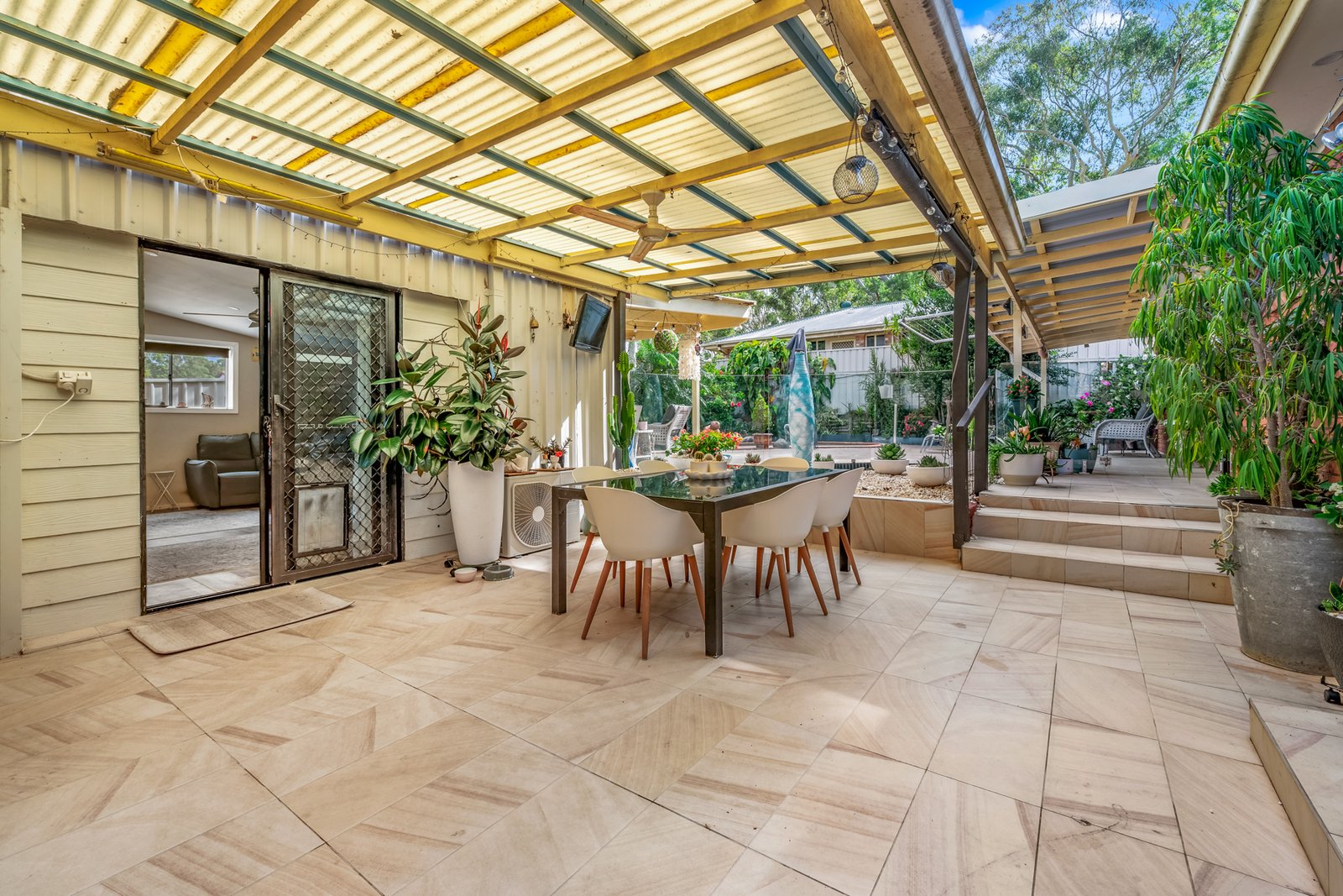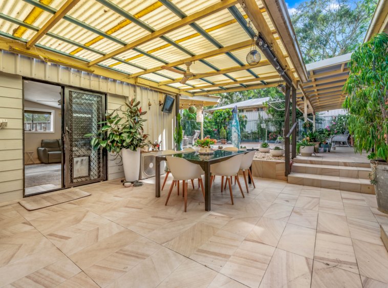 • Covered outdoor entertaining area and private yard