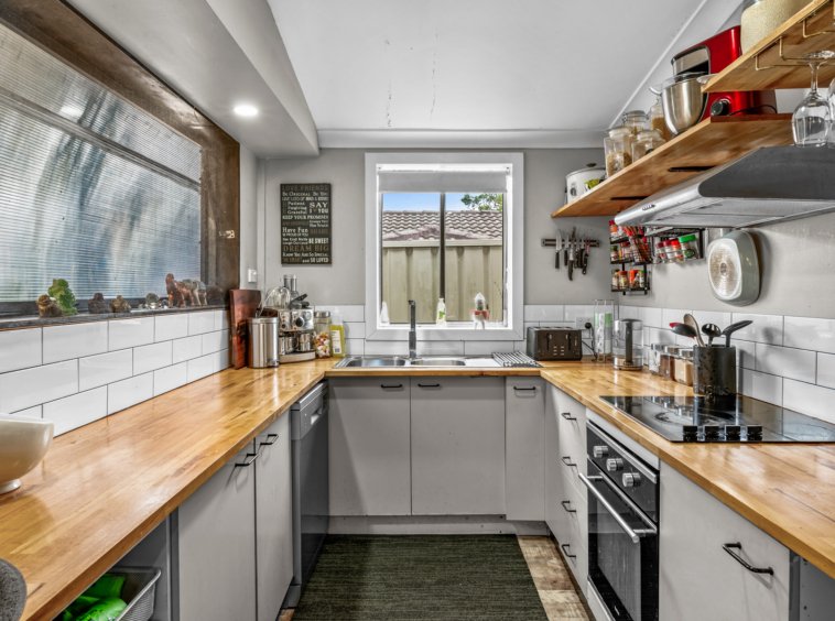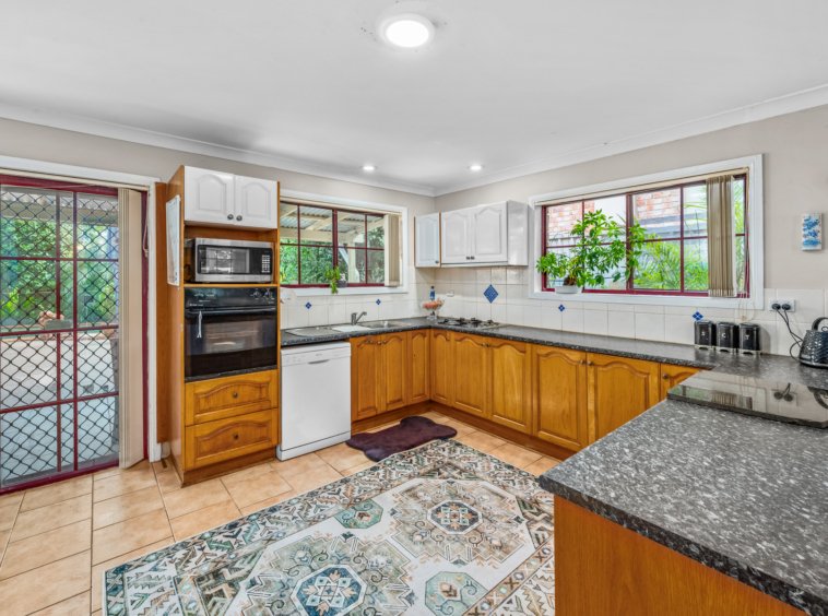 The well-appointed kitchen provides ample bench space and storage, overlooking the main living area and flowing effortlessly to the outdoor entertaining zone, making it ideal for both daily living and hosting guests.