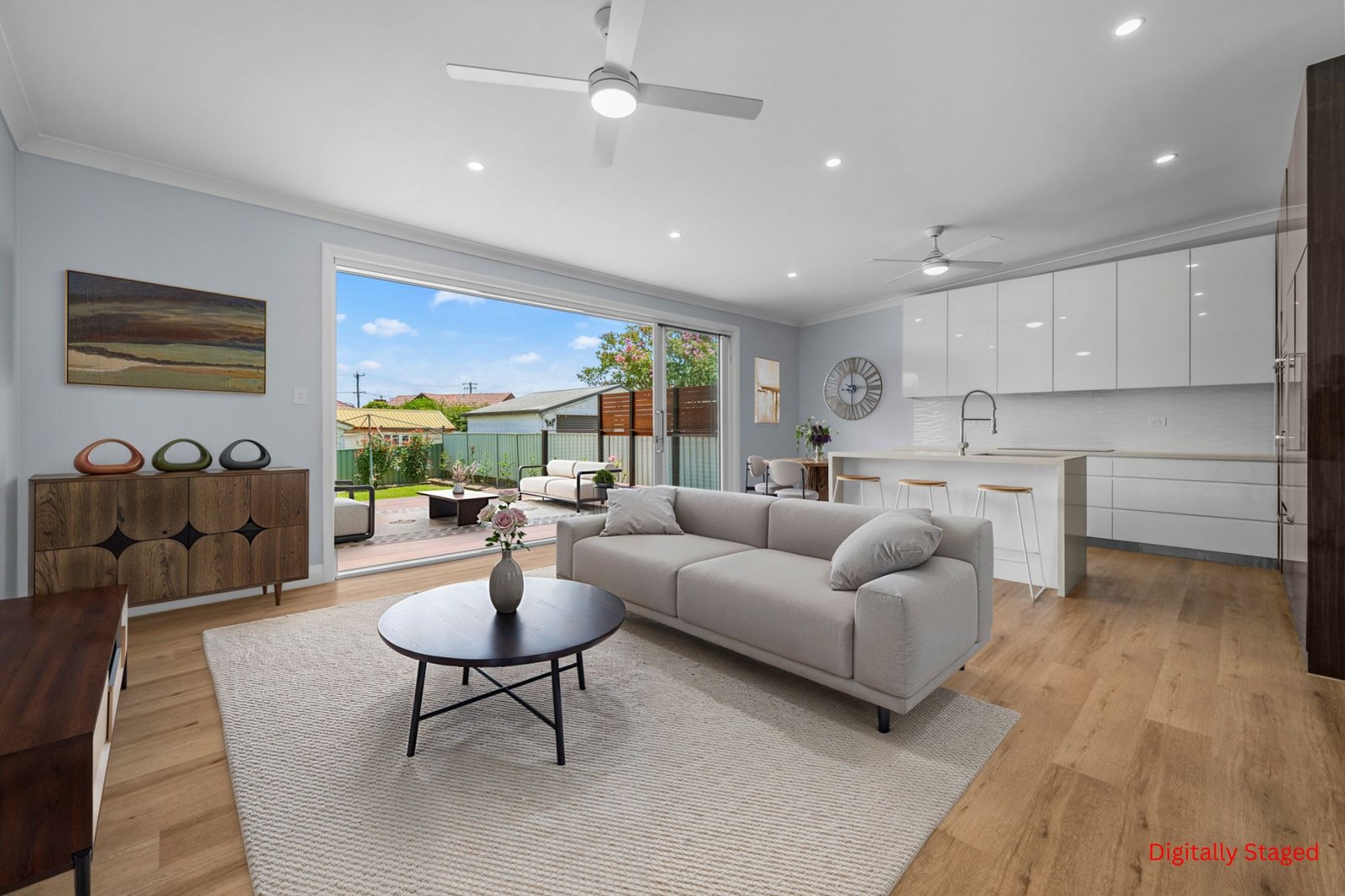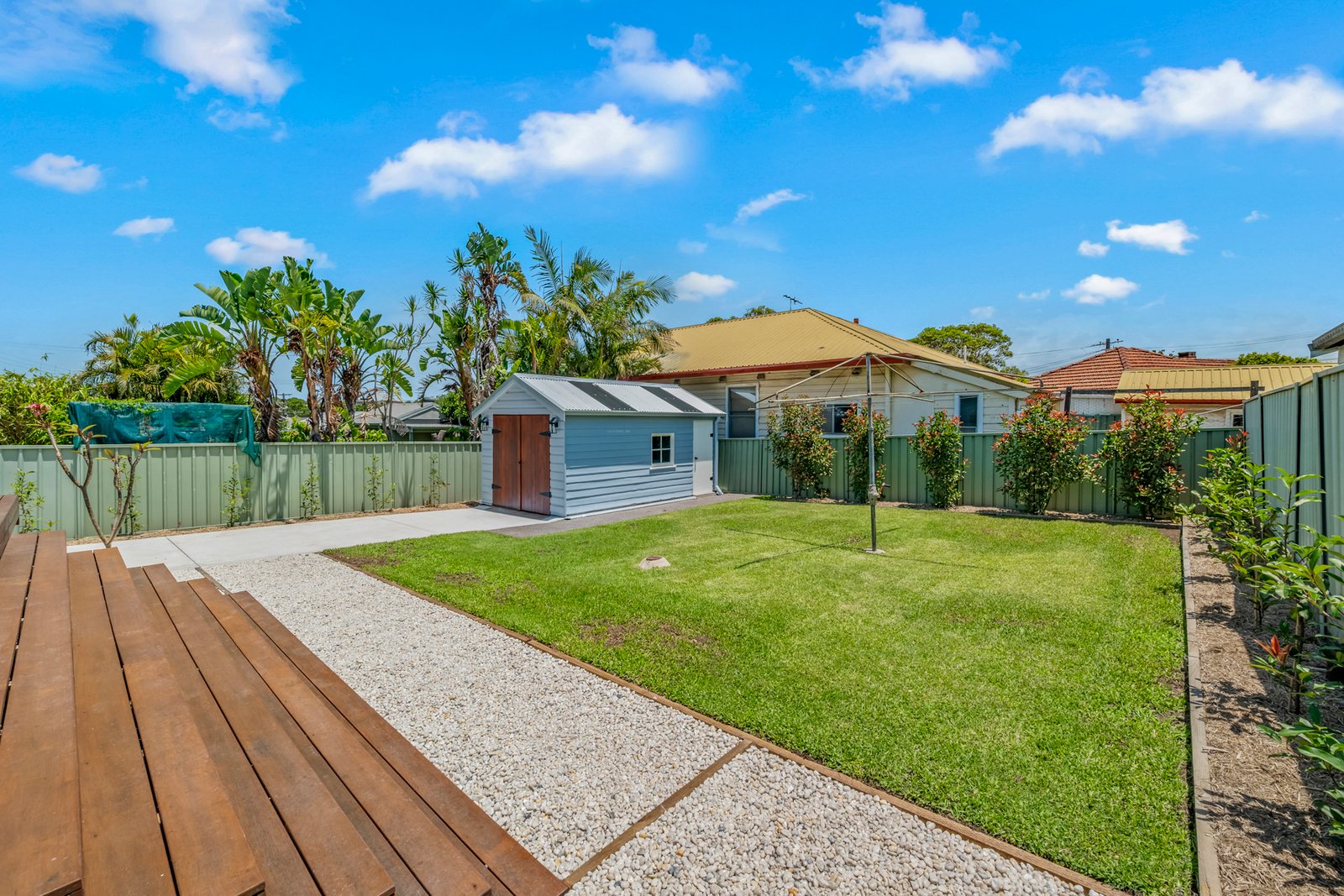Framed by a classic white picket fence and neat, low-maintenance gardens, the home boasts striking street appeal. A long, newly concreted driveway provides ample off-street parking for multiple vehicles, with side access into the house and fully landscaped backyard.