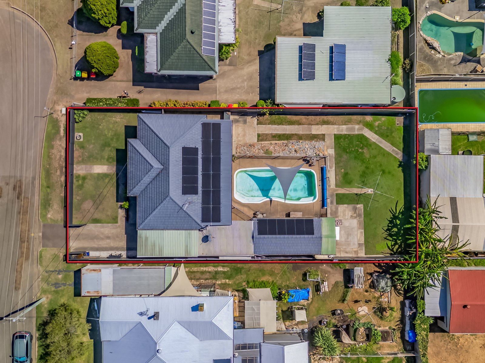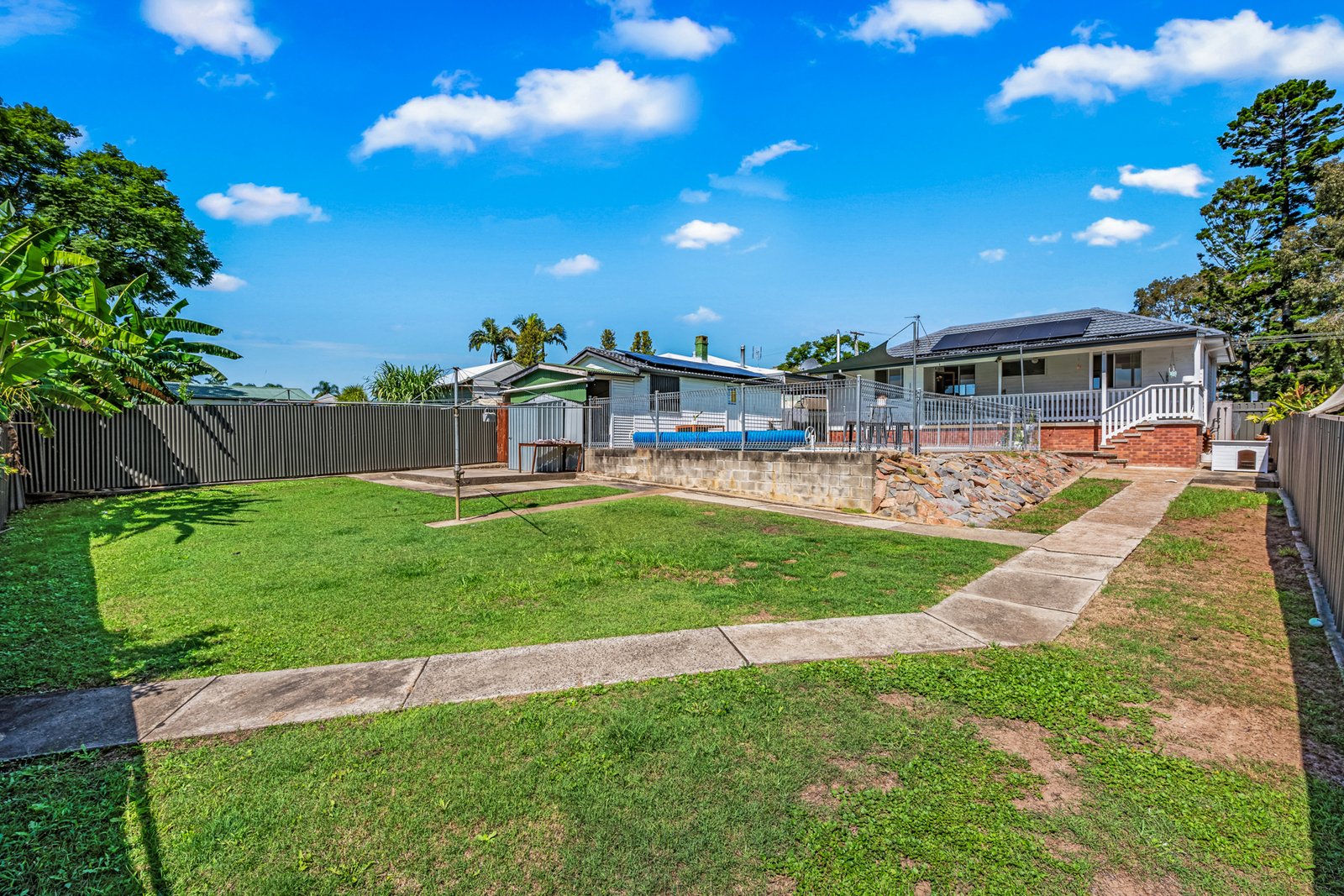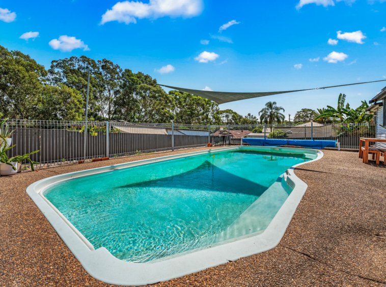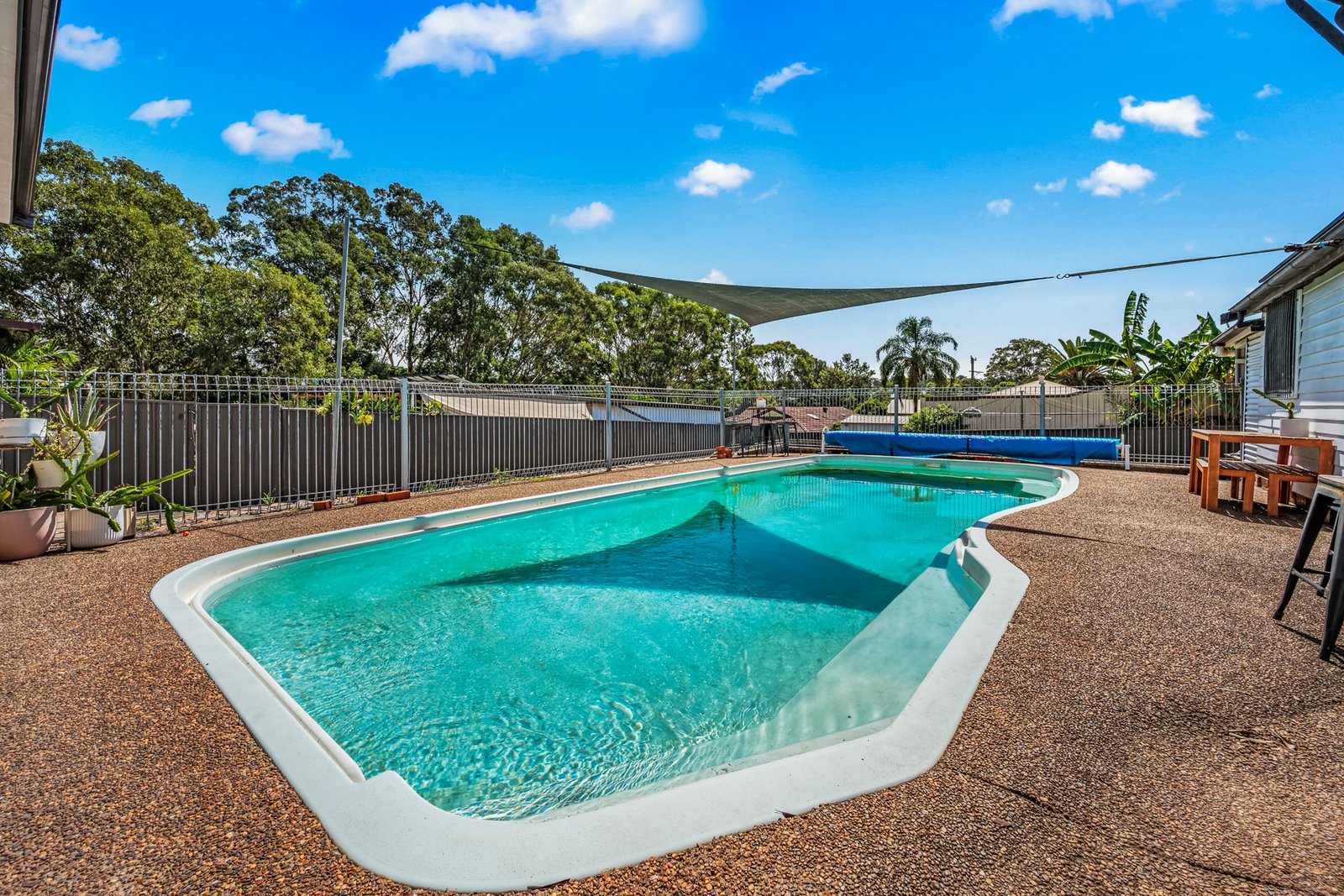 The backyard also features a saltwater in-ground fibreglass swimming pool, creating an ideal space to cool off during the warmer months and enjoy the outdoors.