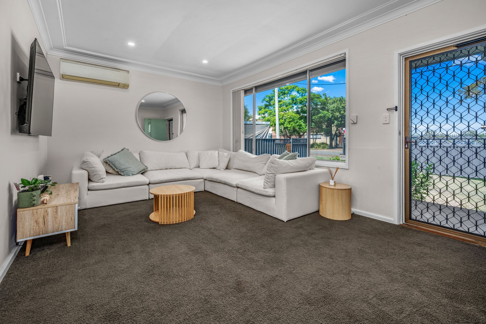Inside, the home features a functional layout with a welcoming lounge room, adjoining dining area, and a practical kitchen designed for everyday living. Comfort is ensured year-round with three air-conditioning units positioned throughout the home, providing heating and cooling across multiple areas.